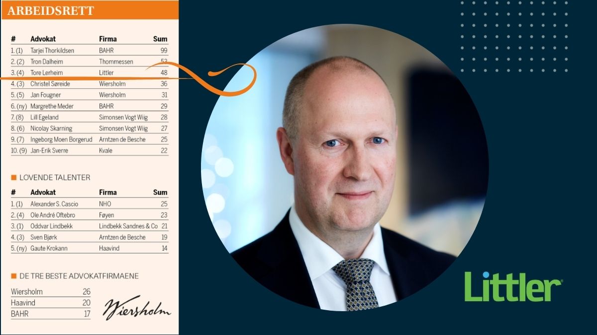 For the 27th time, the lawyer survey is presented. We are delighted that so many of our competitors have once again voted Tore Lerheim on the podium among the best employment lawyers in Norway.
