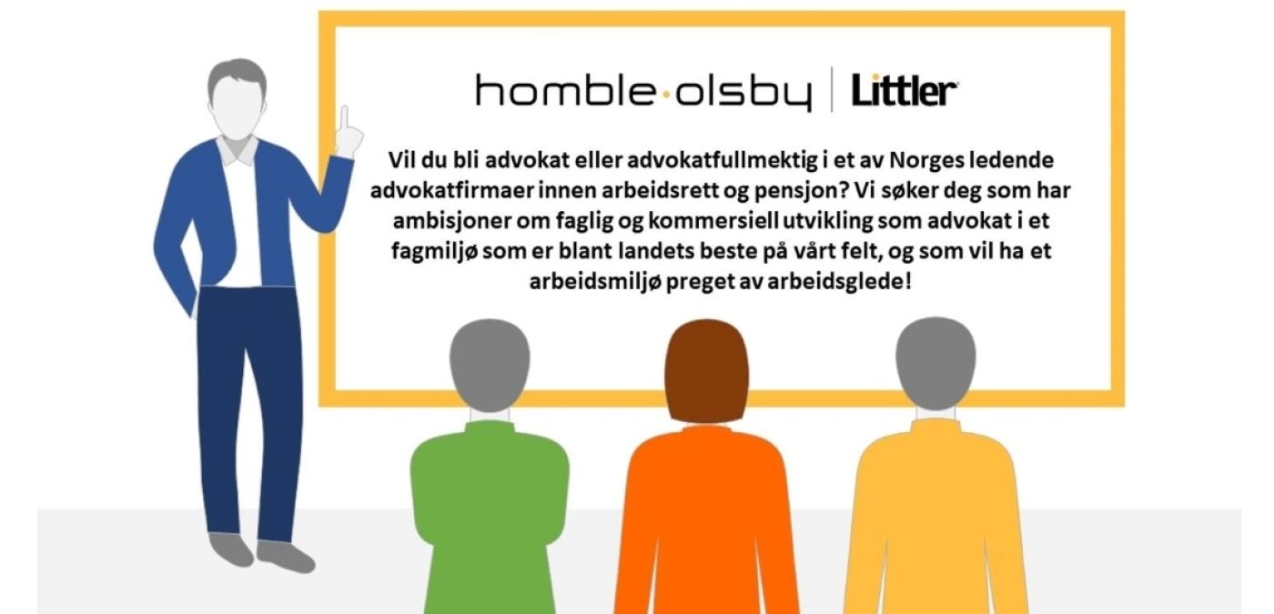 Homble Olsby | Littler er i vekst, og vi ser etter tre – fire nye, dyktige kollegaer, helst med noen års erfaring. Vi søker deg som har ambisjoner om faglig og kommersiell utvikling som advokat i et fagmiljø som er blant landets beste på vårt felt, og som vil ha et arbeidsmiljø preget av arbeidsglede. Vi tilbyr utfordrende og varierte arbeidsoppgaver, med arbeid på ulike rettsområder, mulighet for internasjonalt arbeid og tett samspill med klientene om problemløsingen. Sammen skal vi sette klientene i stand til å håndtere morgendagens utfordringer og skape trygghet for at klientene oppnår det beste resultatet gjennom oss.