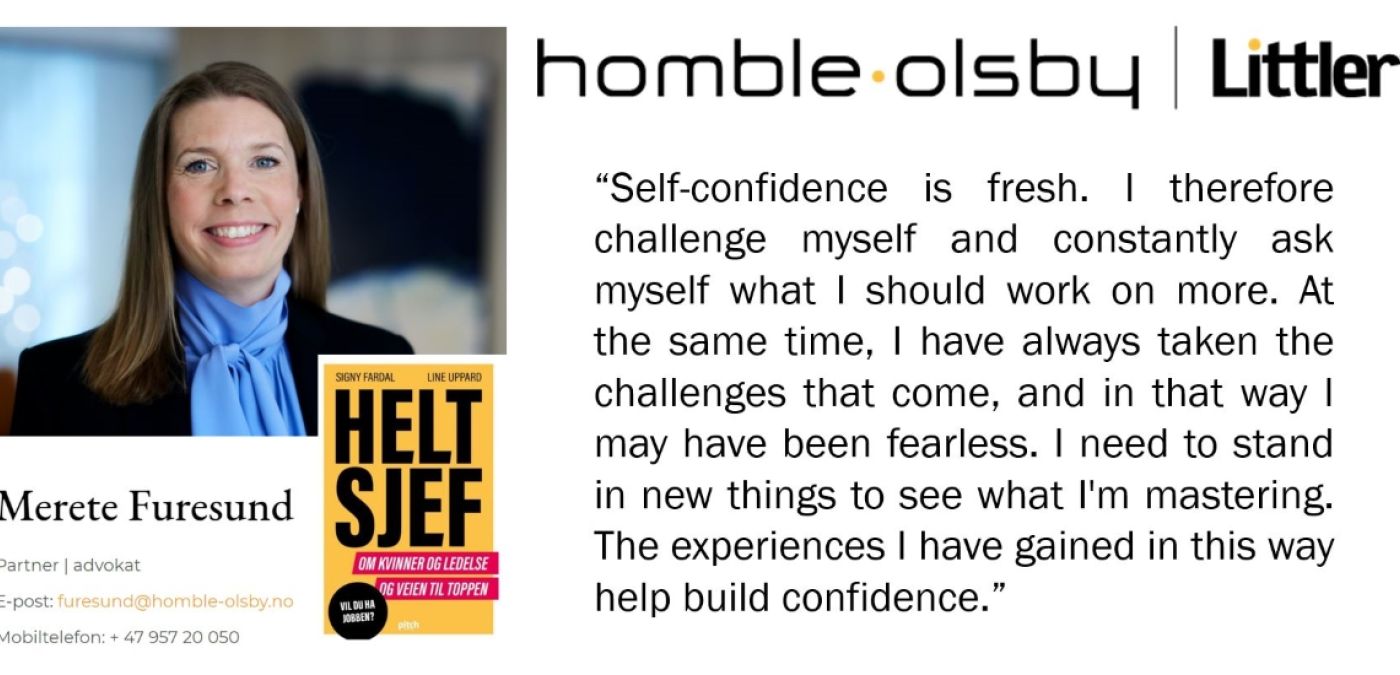 En av våre samarbeidspartnere, FrontRow Consulting, er aktuell med boken «Helt Sjef – om kvinner og ledelse og veien til toppen». Boken har fått terningkast 5 i Dagbladets anmeldelse. Det er lanseringsfest for boken i dag. Merete Furesund i Homble Olsby | Littler er en av 13 dyktige kvinner som er intervjuet i boken om sin karrierevei.
